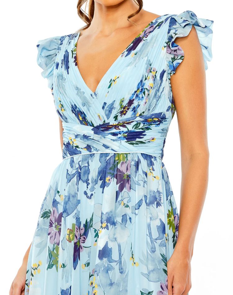 Mac Duggal Floral Print Flutter Sleeve Chiffon Gown | Style 56012 – FINAL SALE