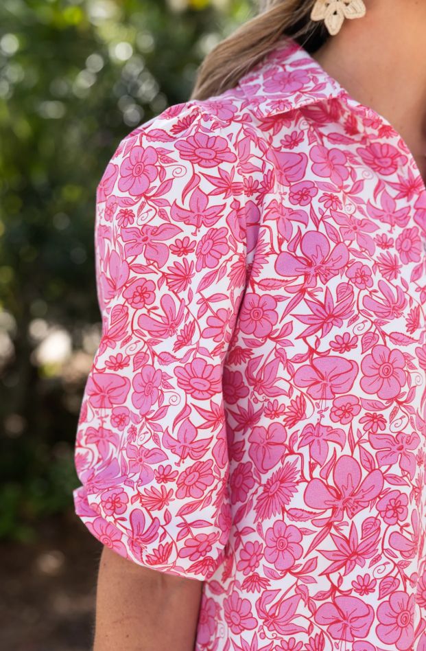 THE PRINT: A lush floral bursting with bold hibiscus blooms in vibrant pink. Hibiscus Haven captures tropical ease and getaway energy in a playful yet polished palette.