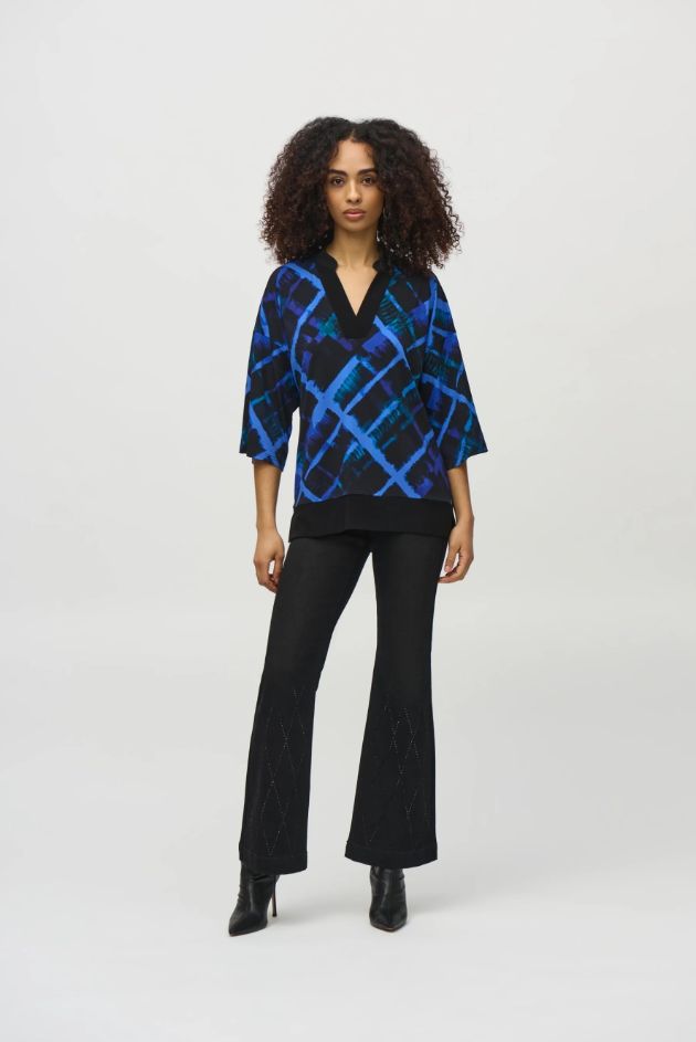 Joseph Ribkoff Black/Multi Abstract Print Boxy Top | Style 244020 | FINAL SALE