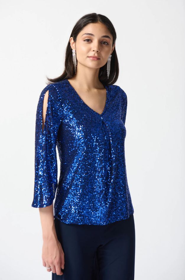 Joseph Ribkoff Sequin Bell Sleeve Flared Top | Style 234701 – FINAL SALE