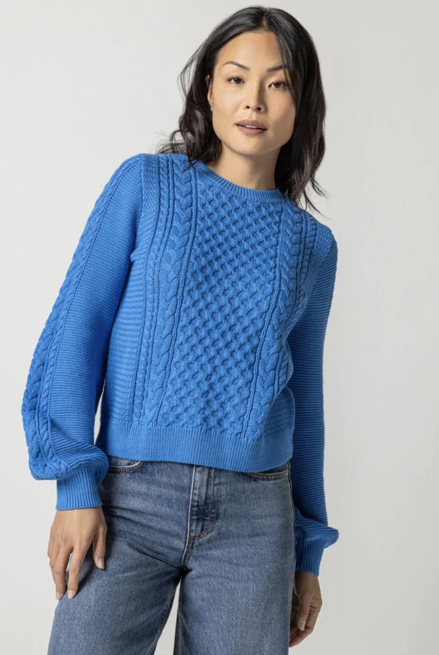 Lilla P Long Sleeve Cable Crewneck Sweater (FINAL SALE)